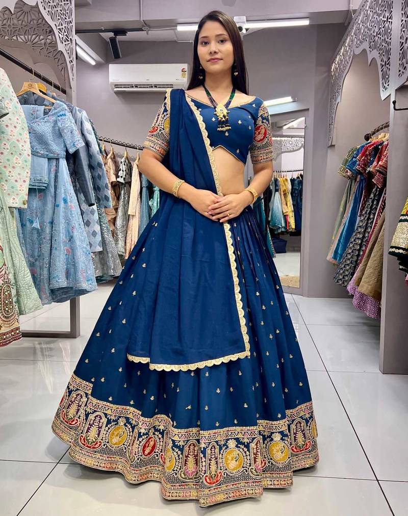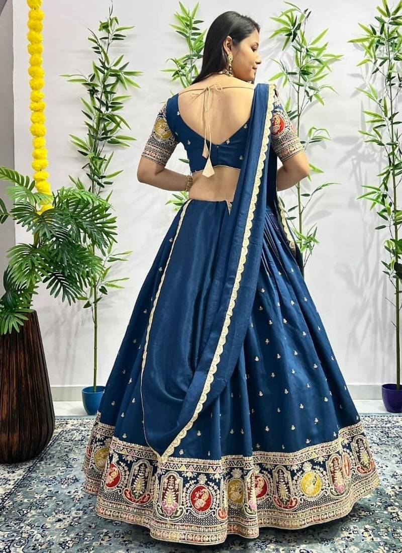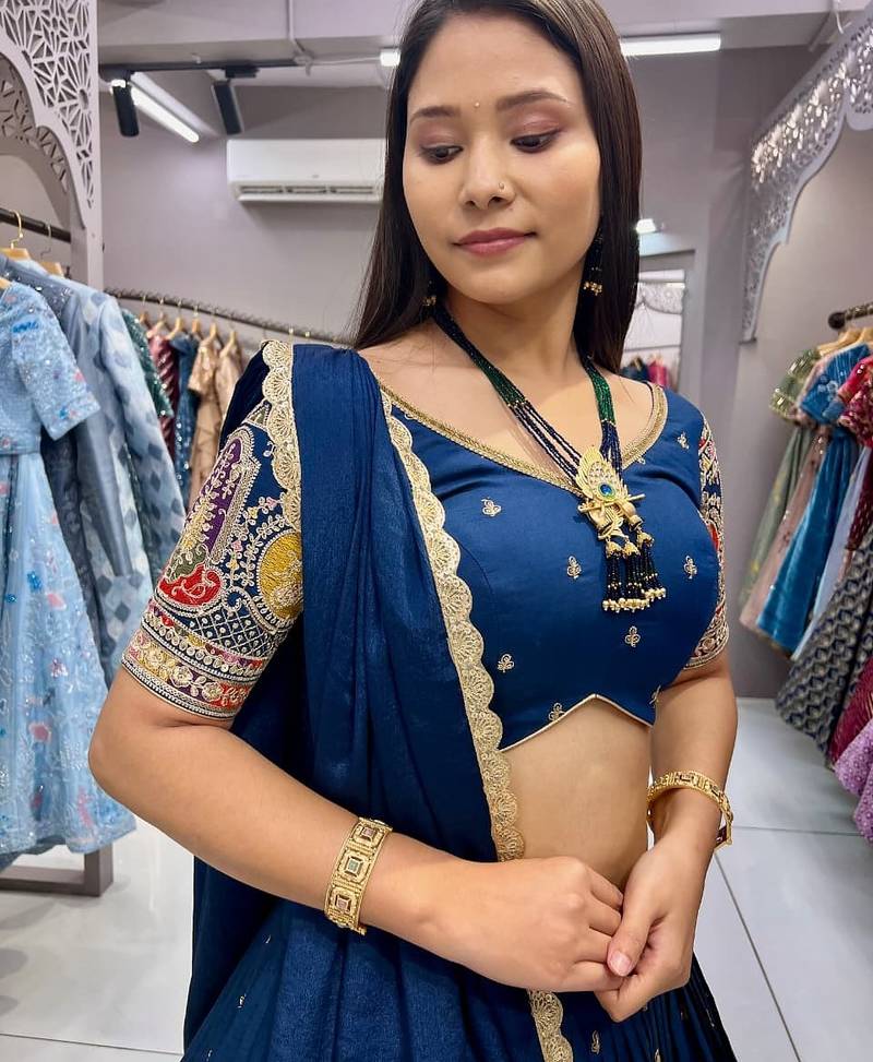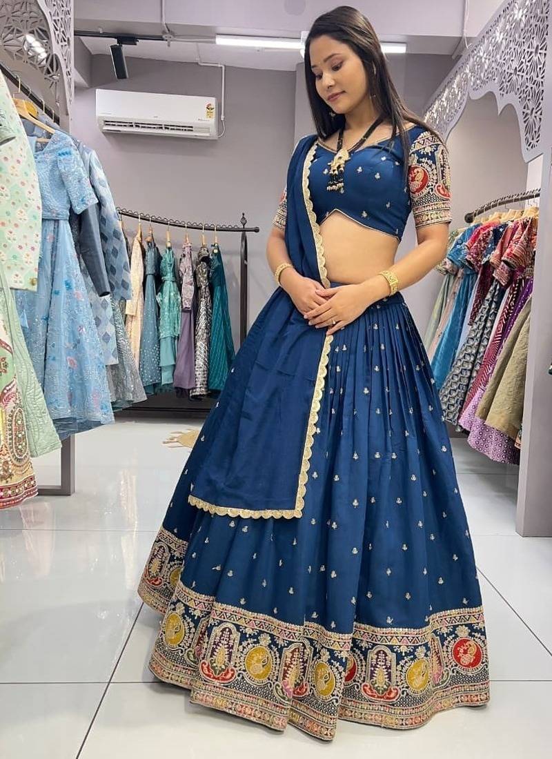 | Product Name | Blue Sequins And Thread Embroidered Roman Silk Indian Designer Lehenga Choli | |