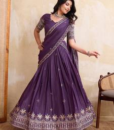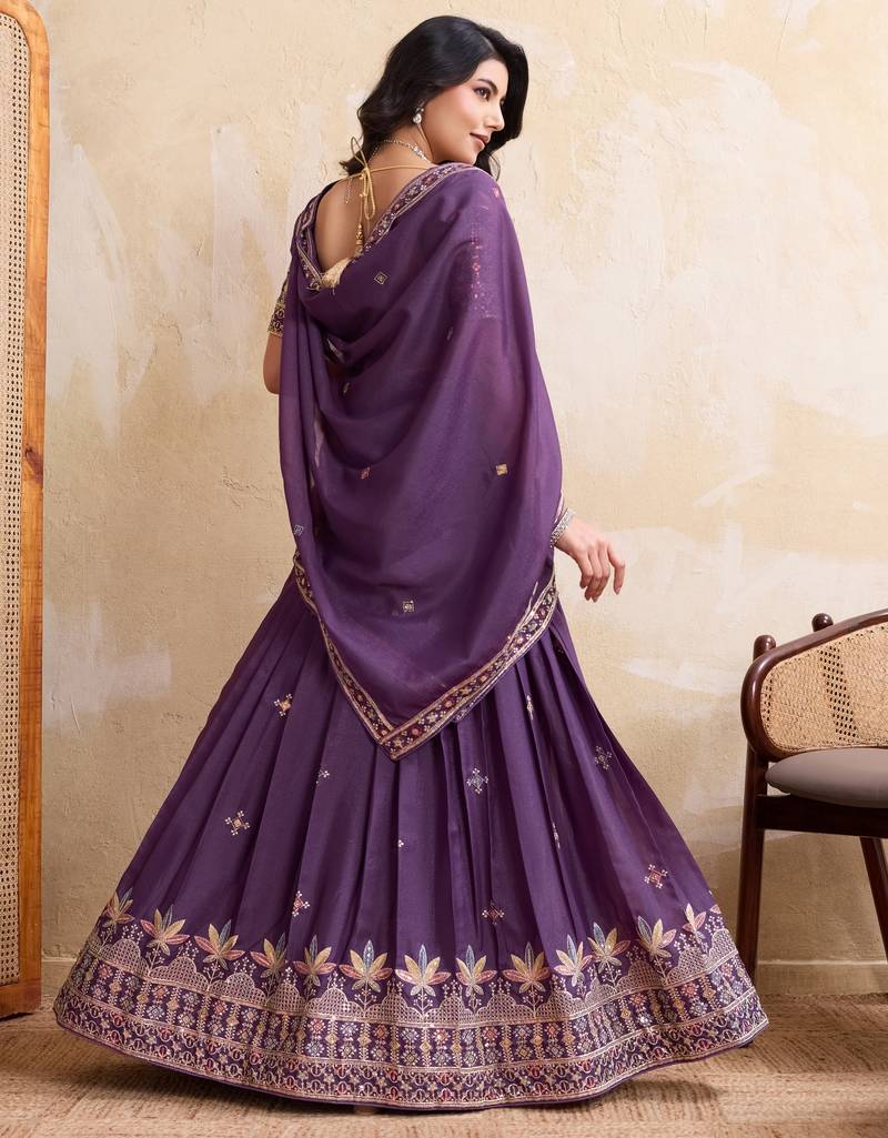 Mesmerizing purple sequins and thread embroidered star georgette indian designer lehenga choli dress