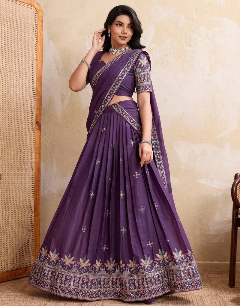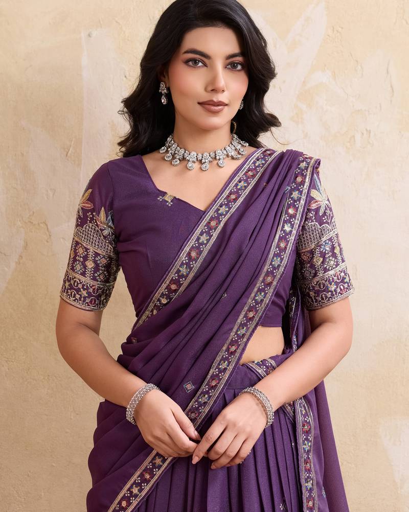 | Product Name | Mesmerizing Purple Sequins And Thread Embroidered Star Georgette Indian Designer Lehenga Choli Dress | |
