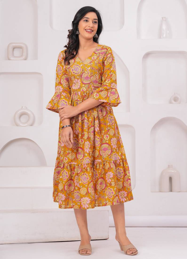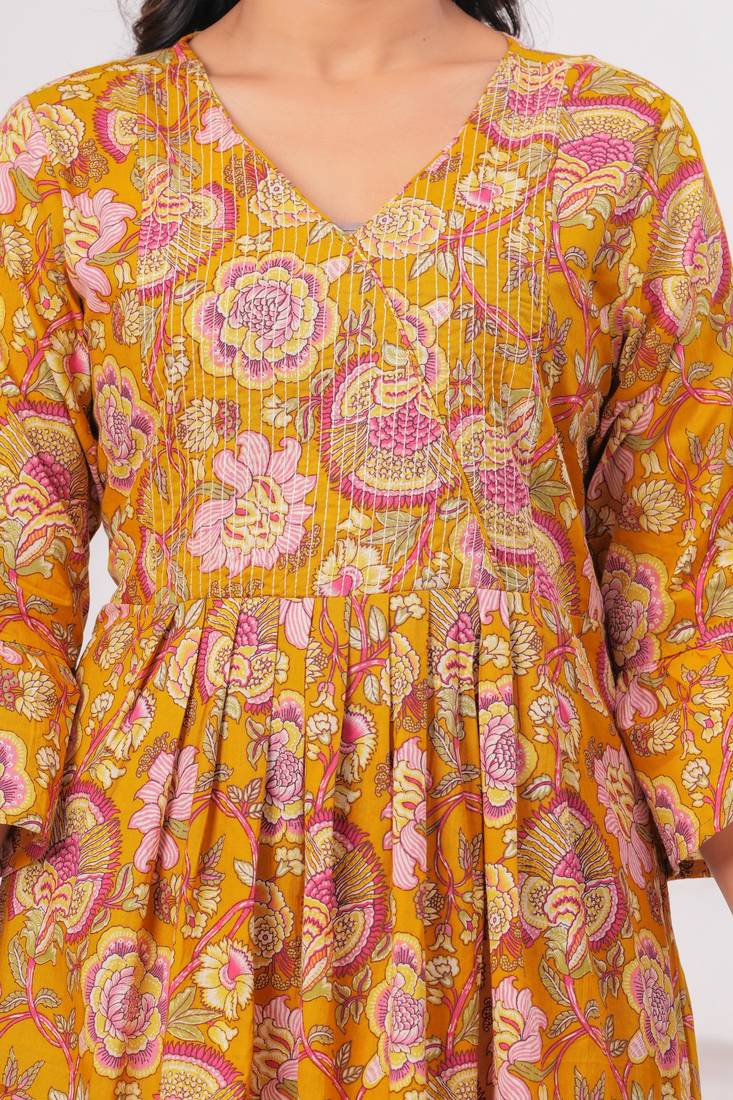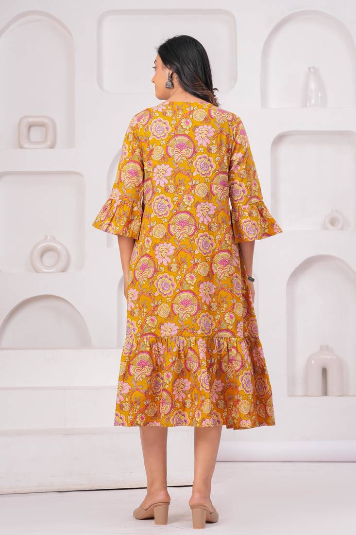 | Product Name | Mustard Cotton Printed Dress | |