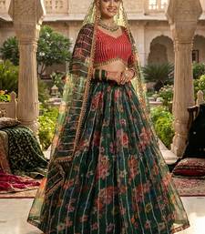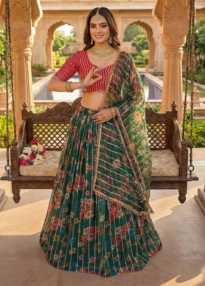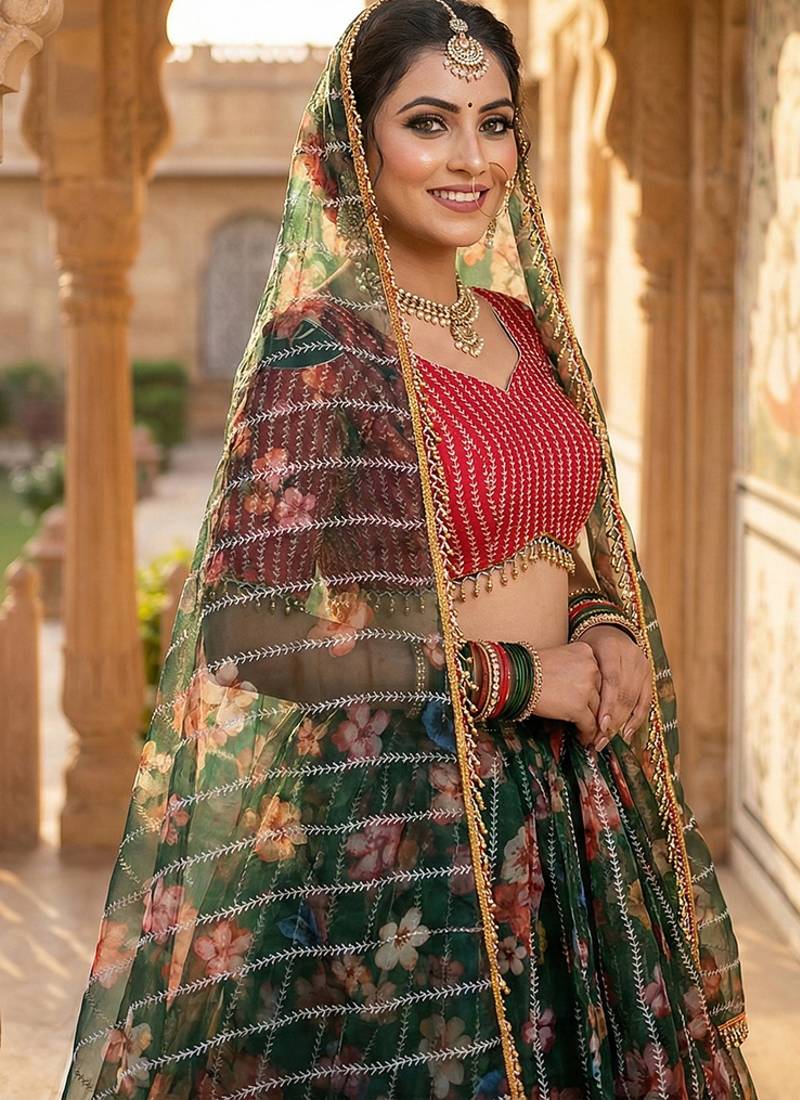 | Product Name | Dark Green Floral Printed Embroidered Organza Lehenga Set Choli Dupatta | |