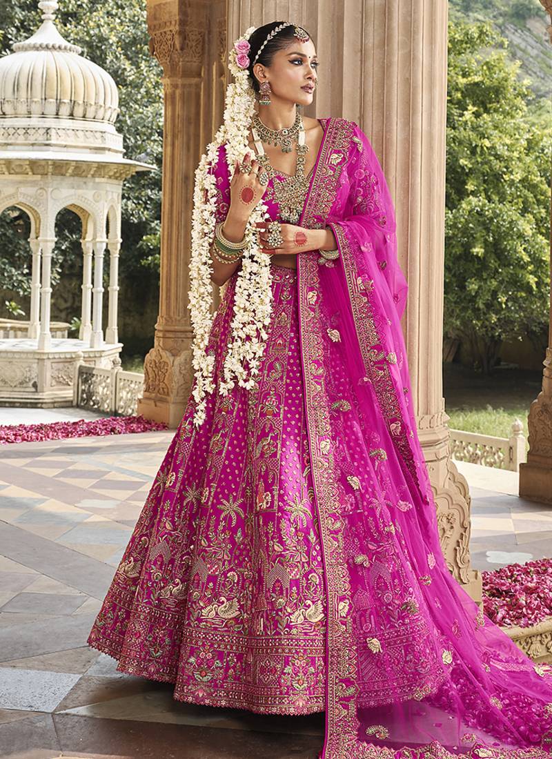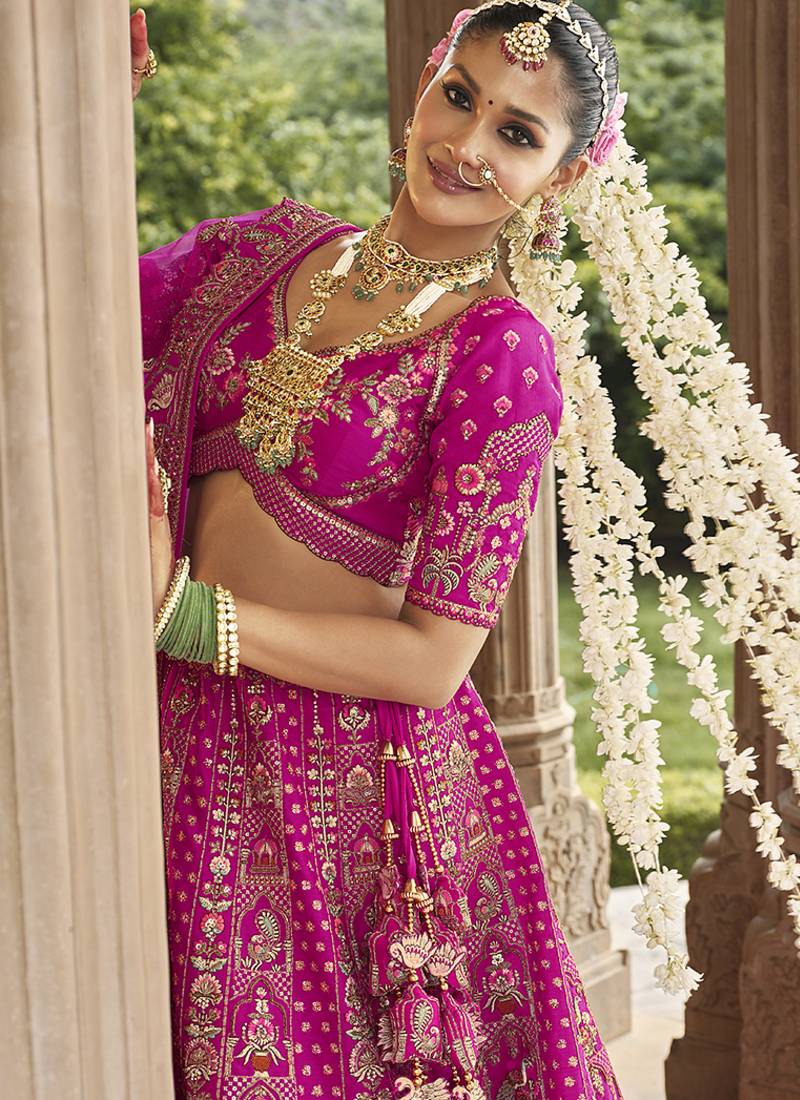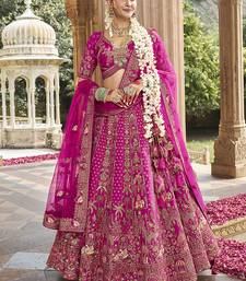 Magenta pink embroidered silk blend bridal lehenga set choli dupatta