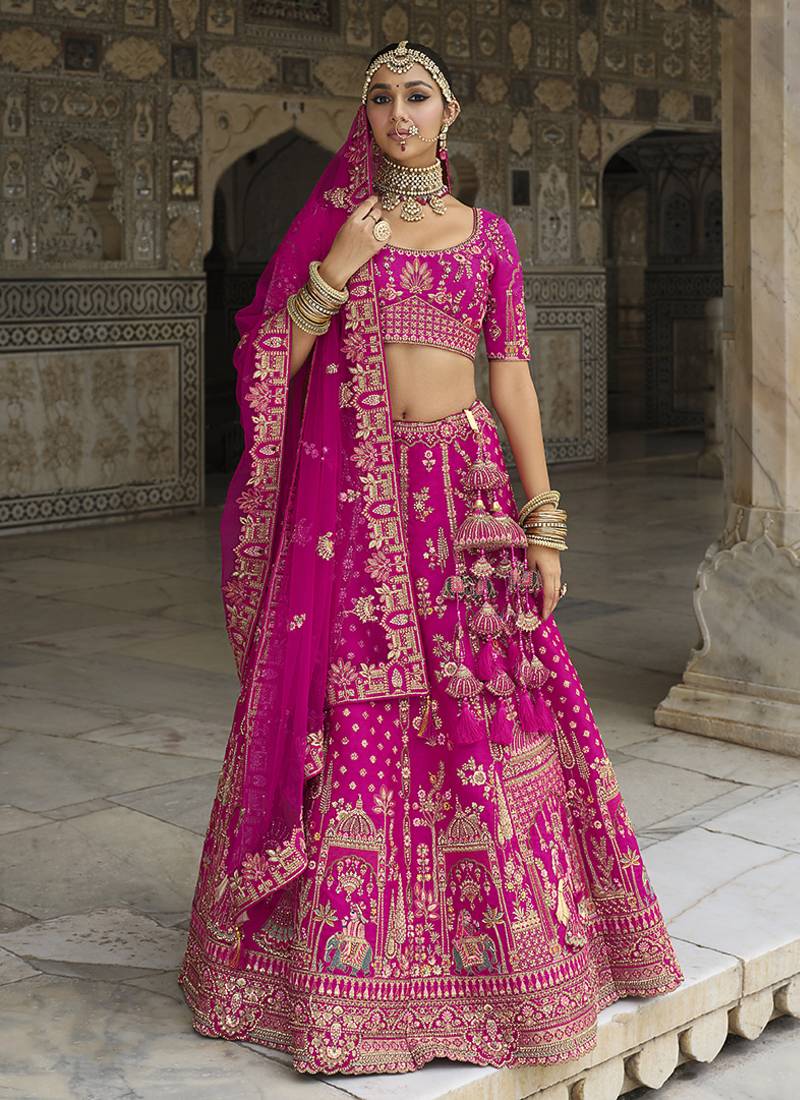 | Product Name | Magenta Pink Embroidered Silk Blend Bridal Lehenga Set Choli Dupatta | |