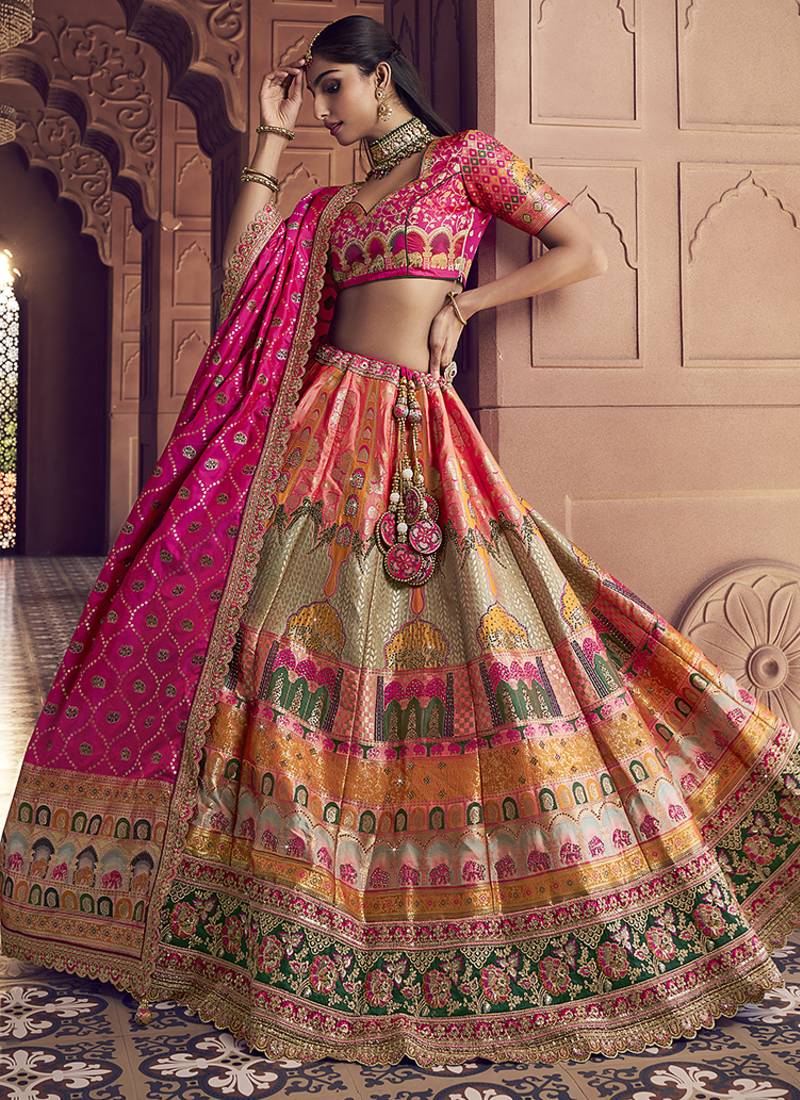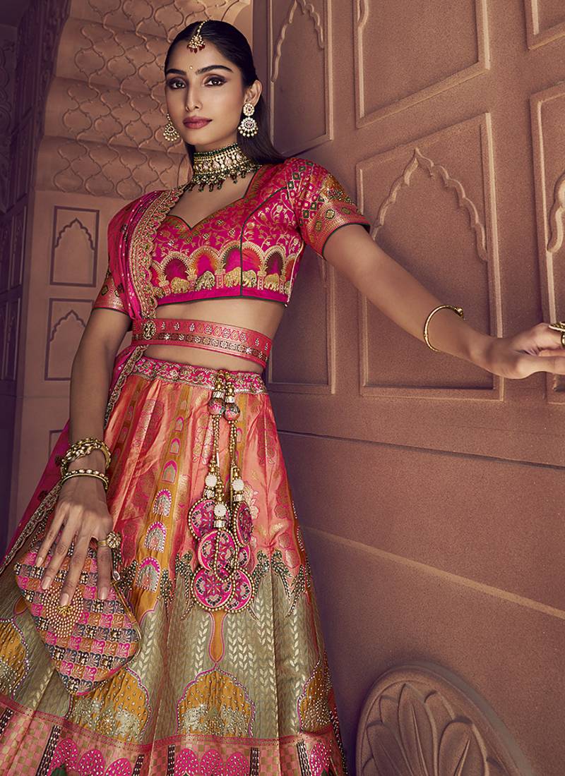 | Product Description | Give In To The Exotic Confluence Of Today And Tomorrow In This Beautiful Attire. Style And Trend Will Be At The Peak Of Your Beauty When You Attire This Multi Colour Banarasi Silk Blend Designer Lehenga Choli. Beautified With Embroidered, Sequins, Swarovski And Weaving Work All Synchronized Well With The Pattern And Design Of The Attire. Comes With Unstiched Choli And Dupatta. Note: Dupatta Size Comes In 2 Mtr. (Slight Variation In Color, Fabric & Work Is Possible. Model Images Are Only Representative.) |
