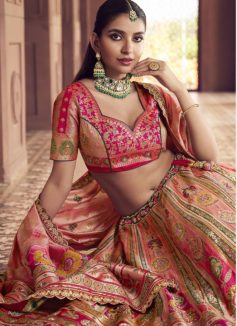 | Product Description | Give In To The Exotic Confluence Of Today And Tomorrow In This Beautiful Attire. Style And Trend Will Be At The Peak Of Your Beauty When You Attire This Multi Colour Banarasi Silk Blend Designer Lehenga Choli. Beautified With Embroidered, Sequins, Swarovski And Weaving Work All Synchronized Well With The Pattern And Design Of The Attire. Comes With Unstiched Choli And Dupatta. Note: Dupatta Size Comes In 2 Mtr. (Slight Variation In Color, Fabric & Work Is Possible. Model Images Are Only Representative.) |