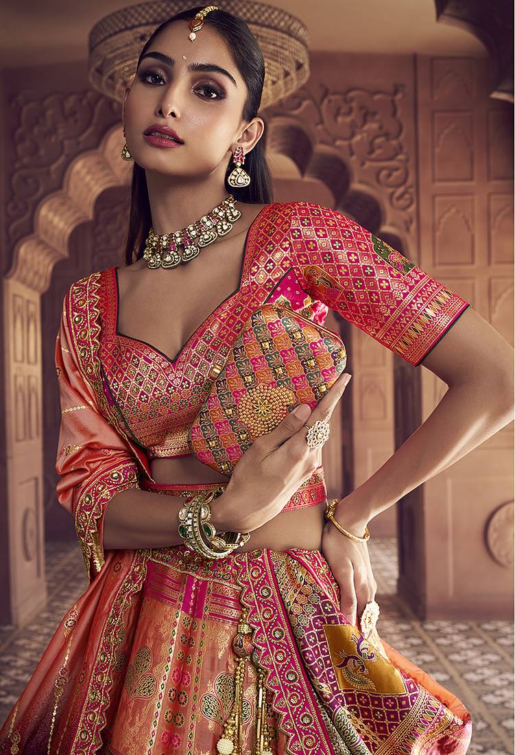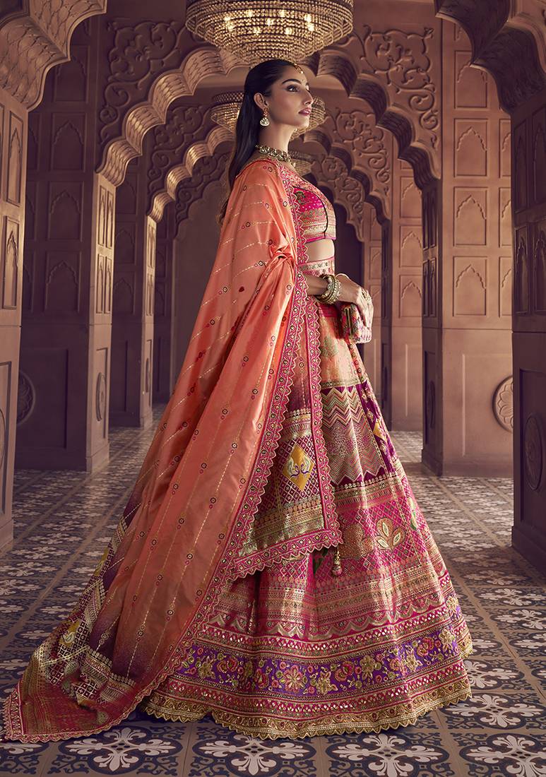 | Product Description | Give In To The Exotic Confluence Of Today And Tomorrow In This Beautiful Attire. Style And Trend Will Be At The Peak Of Your Beauty When You Attire This Multi Colour Banarasi Silk Blend Designer Lehenga Choli. Beautified With Embroidered, Sequins, Swarovski And Weaving Work All Synchronized Well With The Pattern And Design Of The Attire. Comes With Unstiched Choli And Dupatta. Note: Dupatta Size Comes In 2 Mtr. (Slight Variation In Color, Fabric & Work Is Possible. Model Images Are Only Representative.) |
