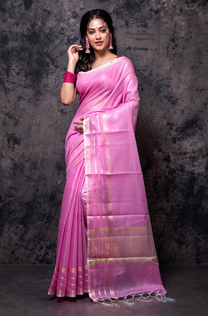 | • | Saree | : | Color- Pink / Fabric- Tissue |