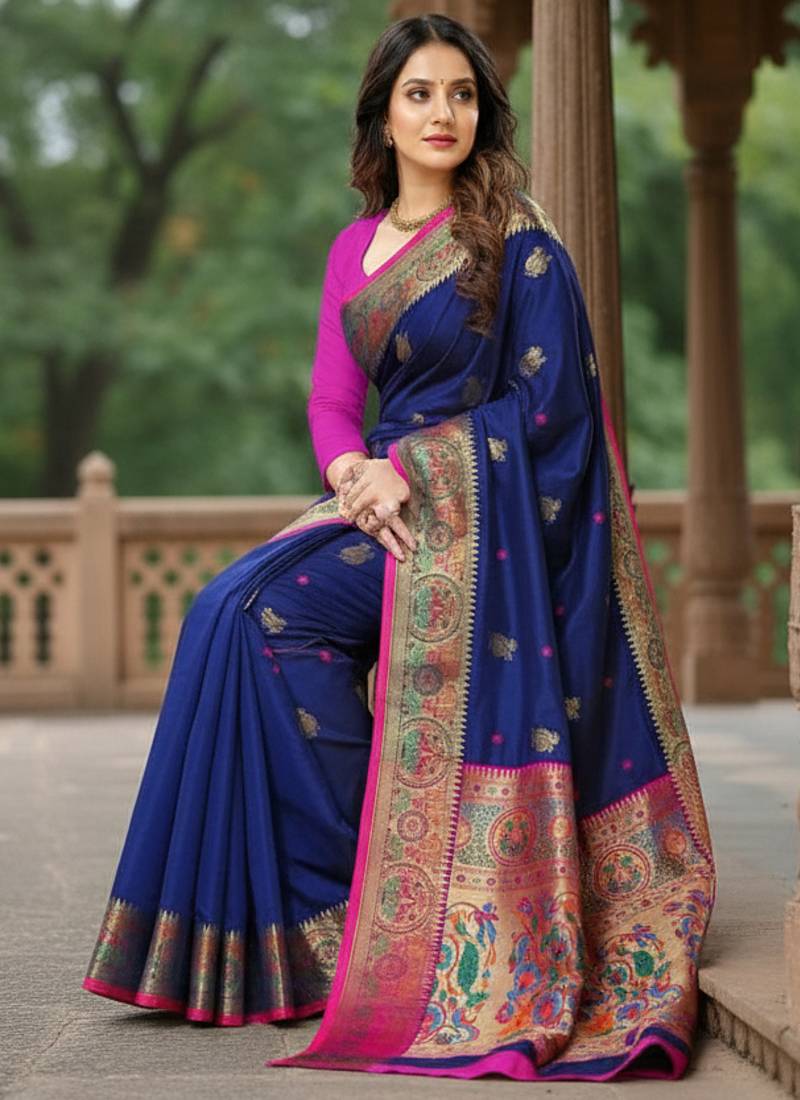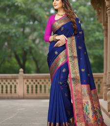 Blue color meenakari zari weaving soft art silk saree with unstiched blouse