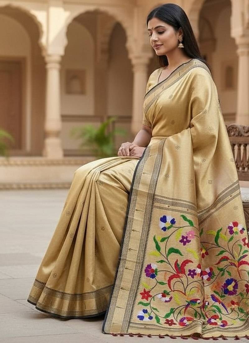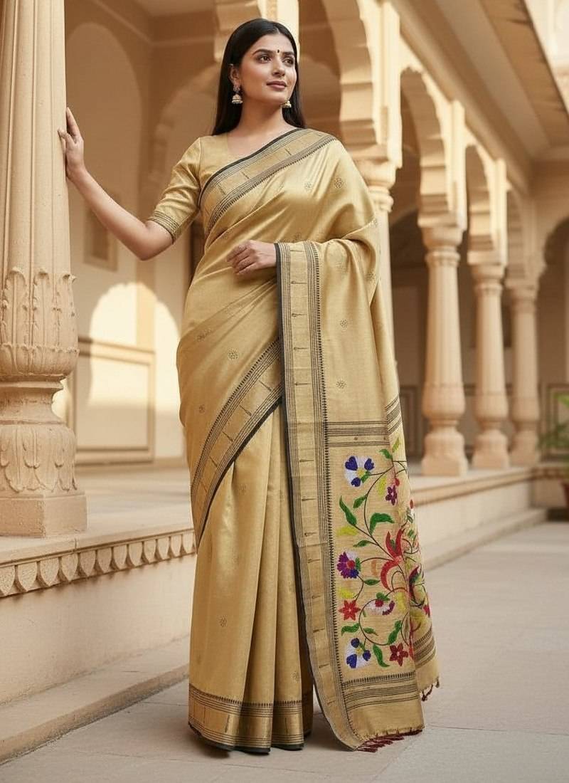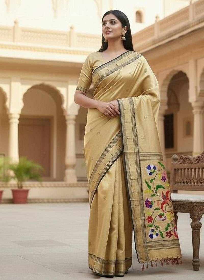 | Product Name | Cream Color Soft Art Silk Paithani Zari Tassels Saree With Unstiched Blouse | |