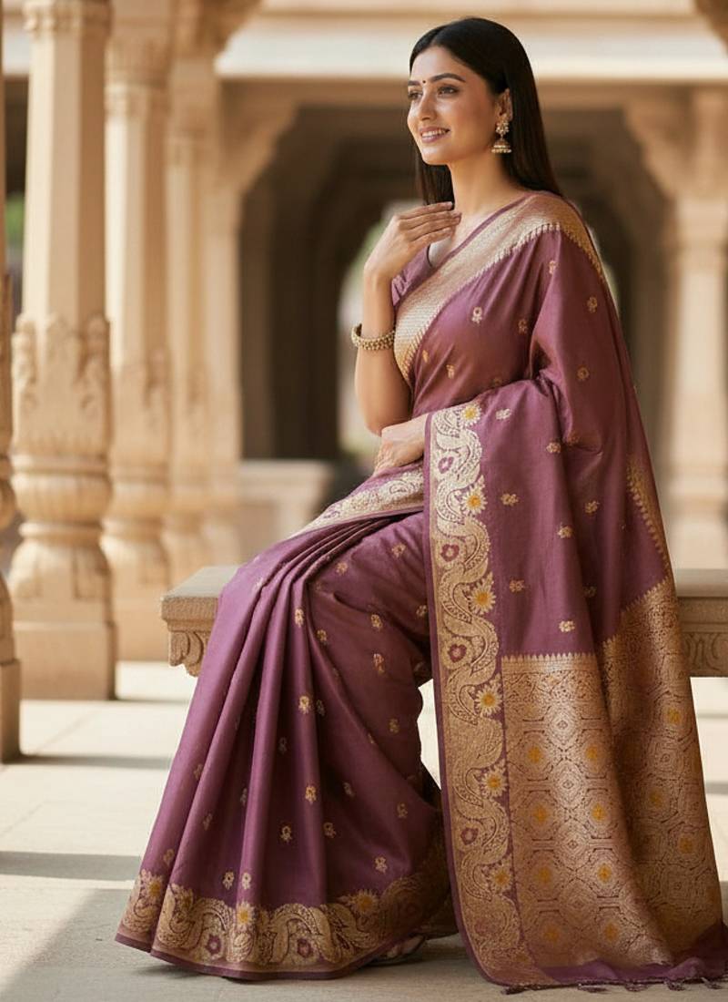 Magenta color meenakari zari weaving soft art silk saree with unstiched blouse