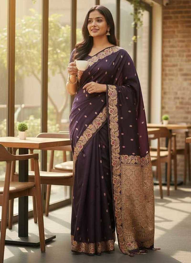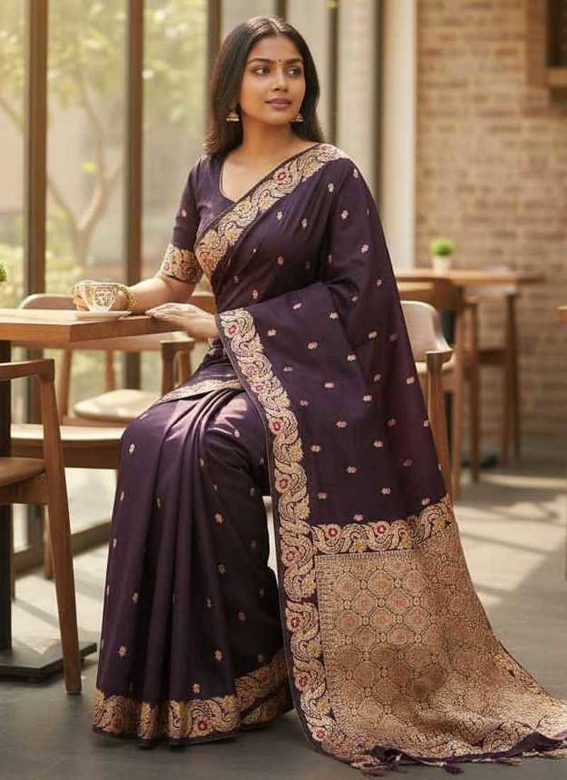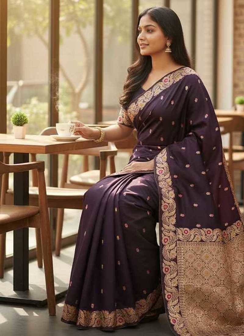 Plum color meenakari zari weaving soft art silk saree with unstiched blouse