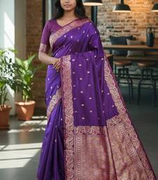 Purple color meenakari zari weaving soft art silk saree with unstiched blouse