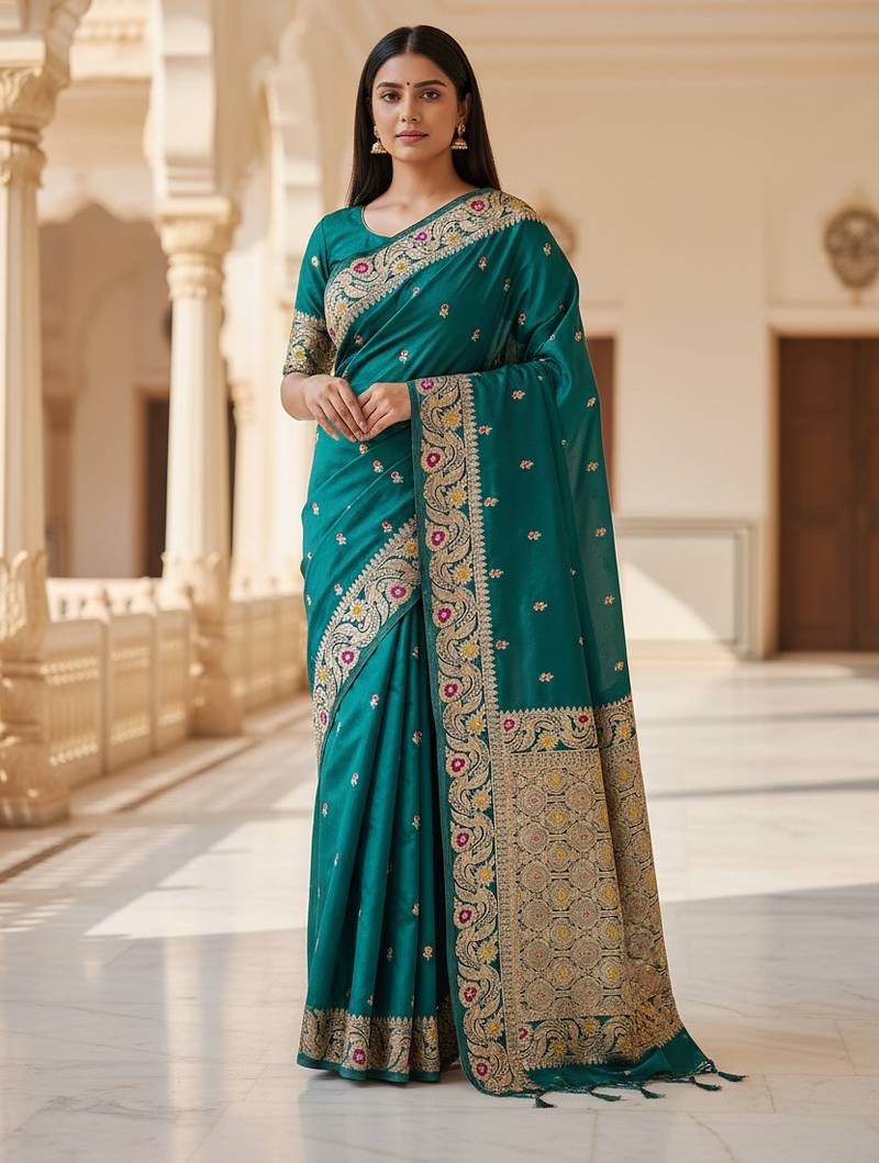 | • | Saree | : | Color- Teal / Fabric- Art Silk |