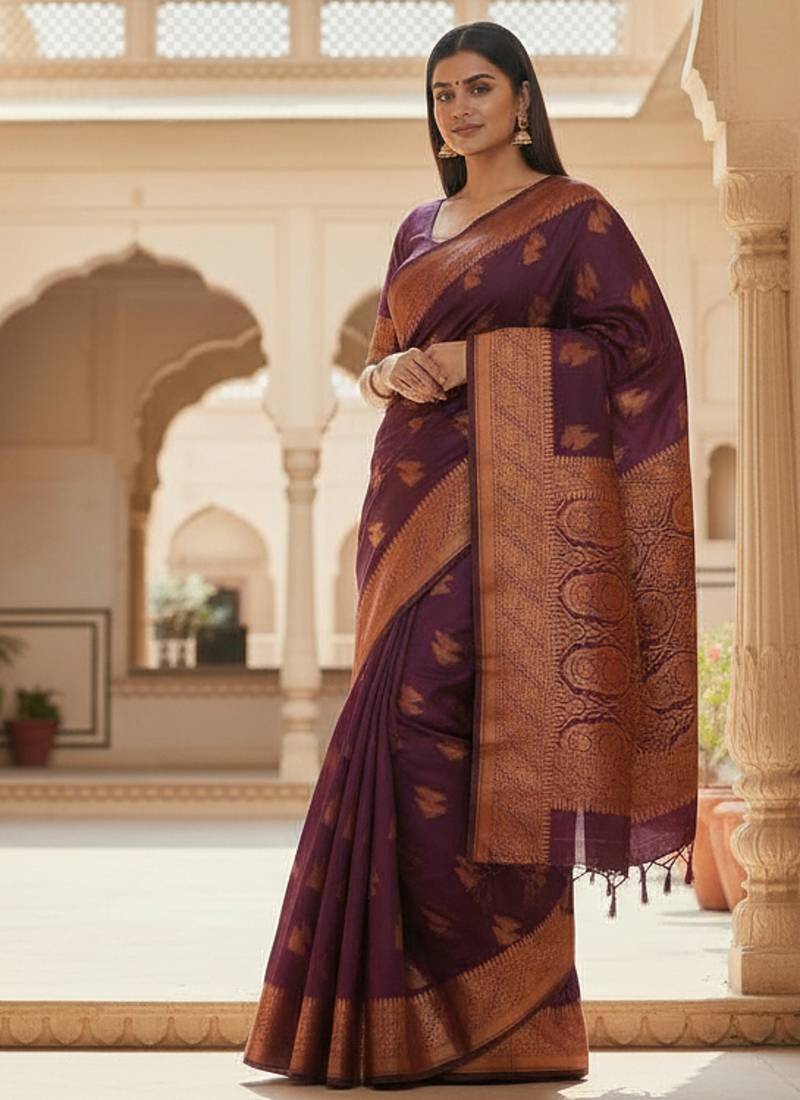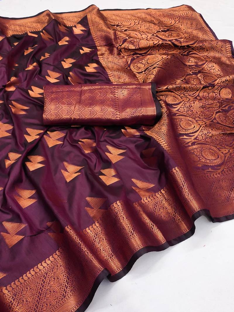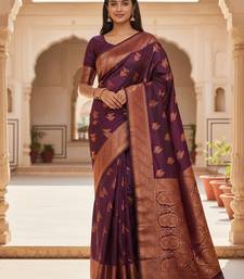 Wine color meenakari zari weaving soft art silk saree with unstiched blouse