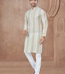 Cream heavy cotton with pintex work kurta pyjama for mens wear