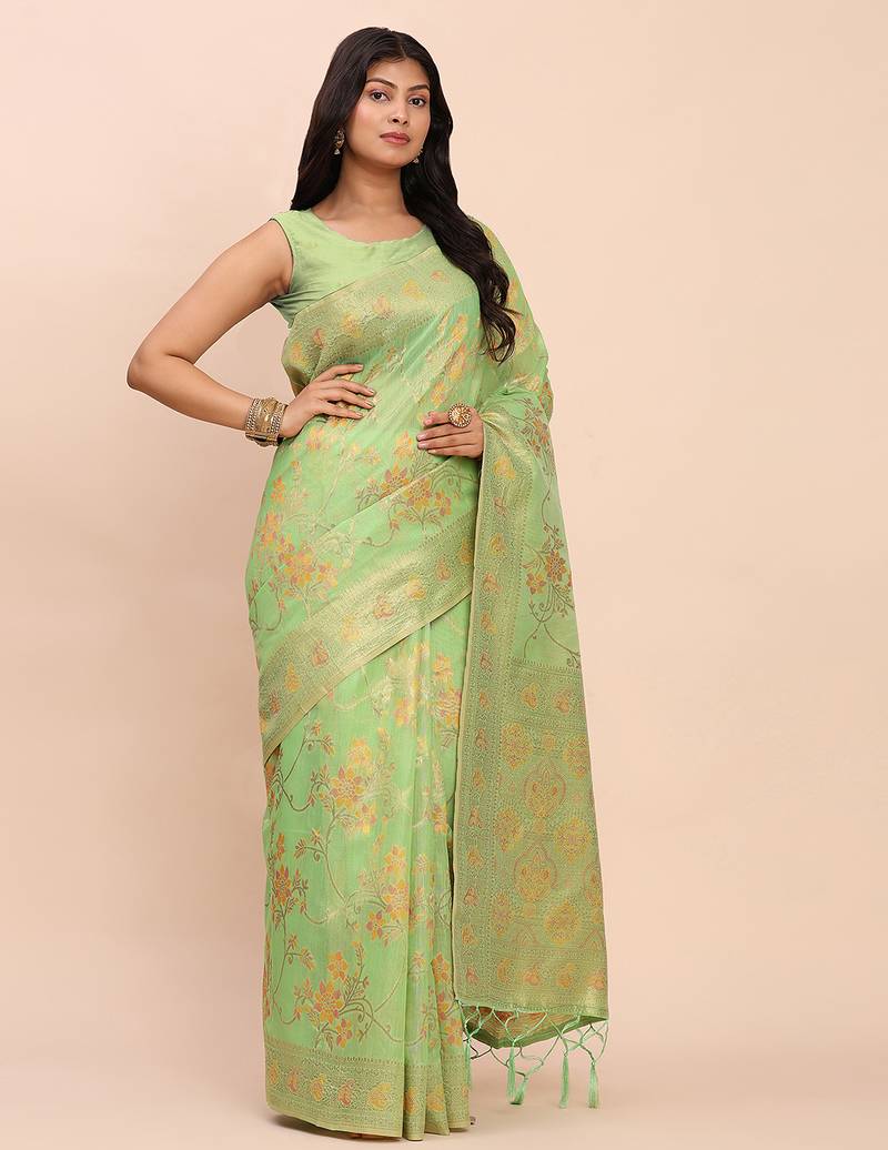 | Product Name | Green Color Woven Work Linen Cotton Saree | |