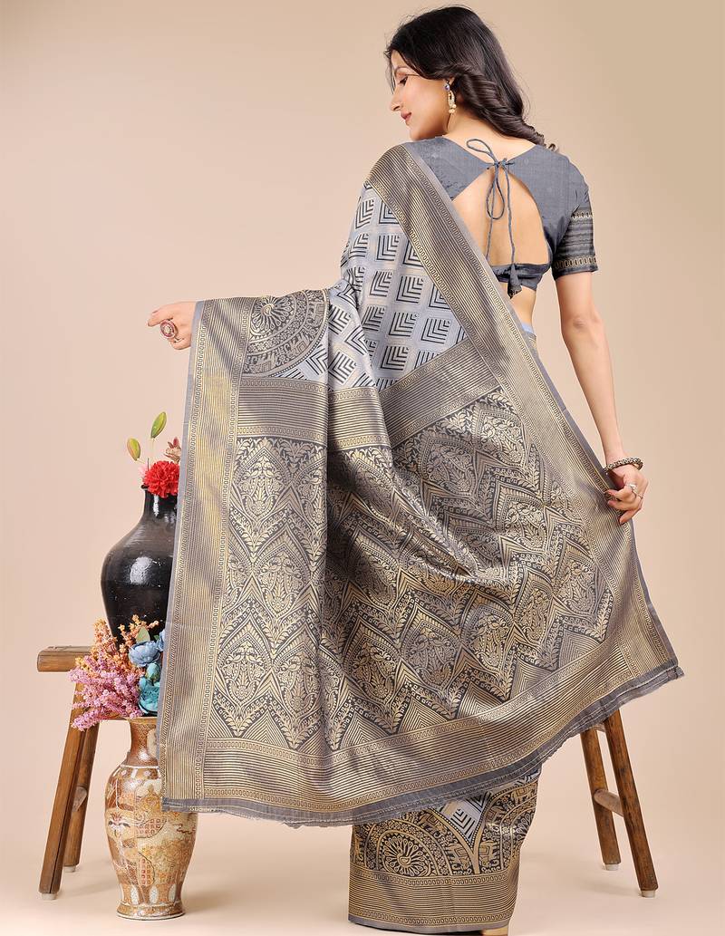 | Product Name | Grey Color Woven Banarasi Art Silk Saree | |