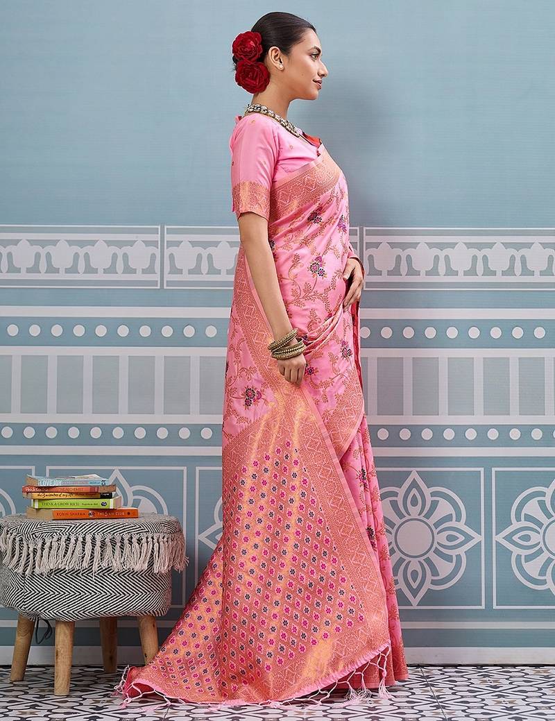 | Product Name | Light Pink Color Woven Work Art Silk Saree | |