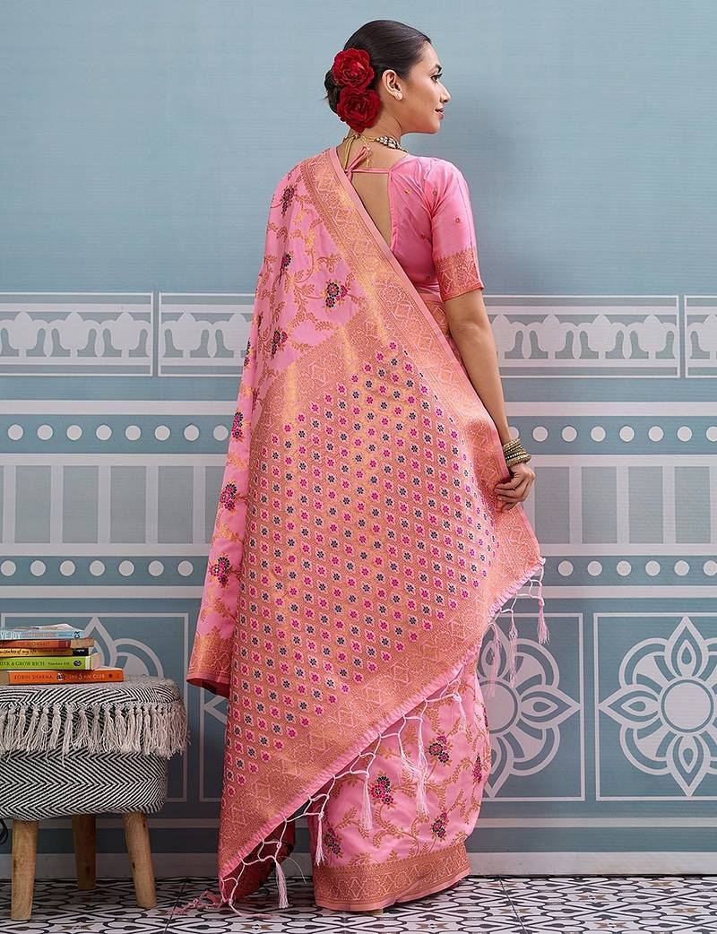 Light pink color woven work art silk saree