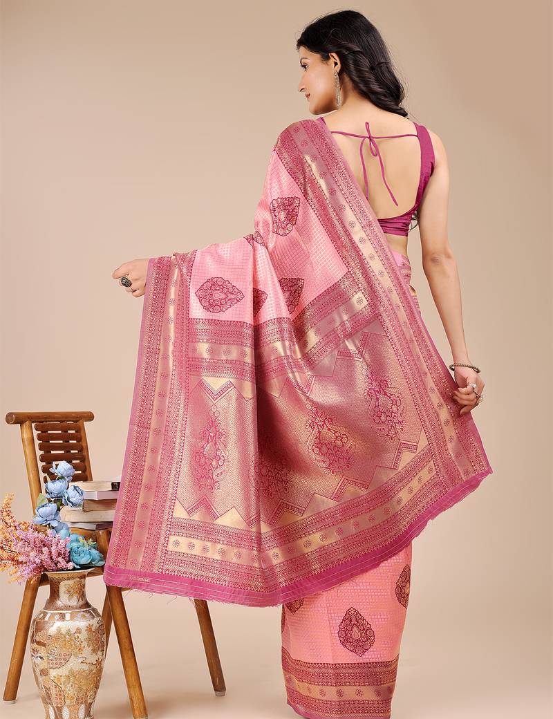 Light pink & magenta color woven work banarasi art silk saree