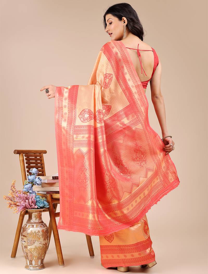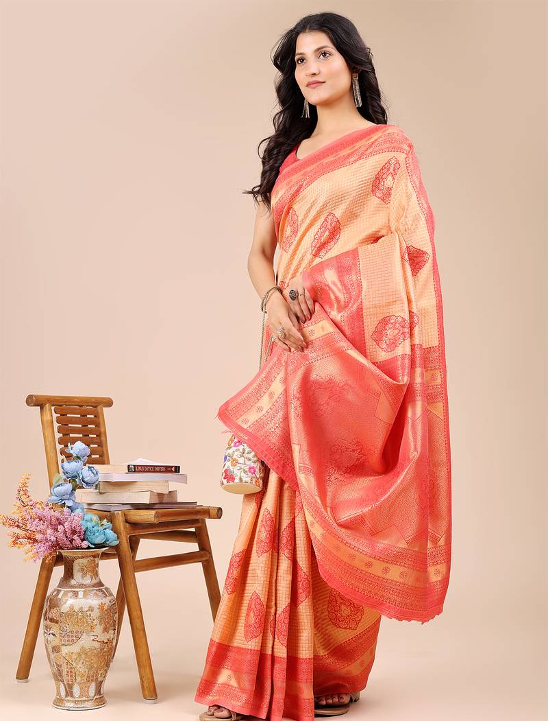 | Product Name | Ornge & Red Color Woven Work Banarasi Art Silk Saree | |