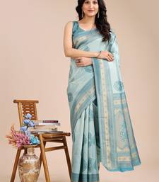 Sea green color woven work banarasi art silk saree