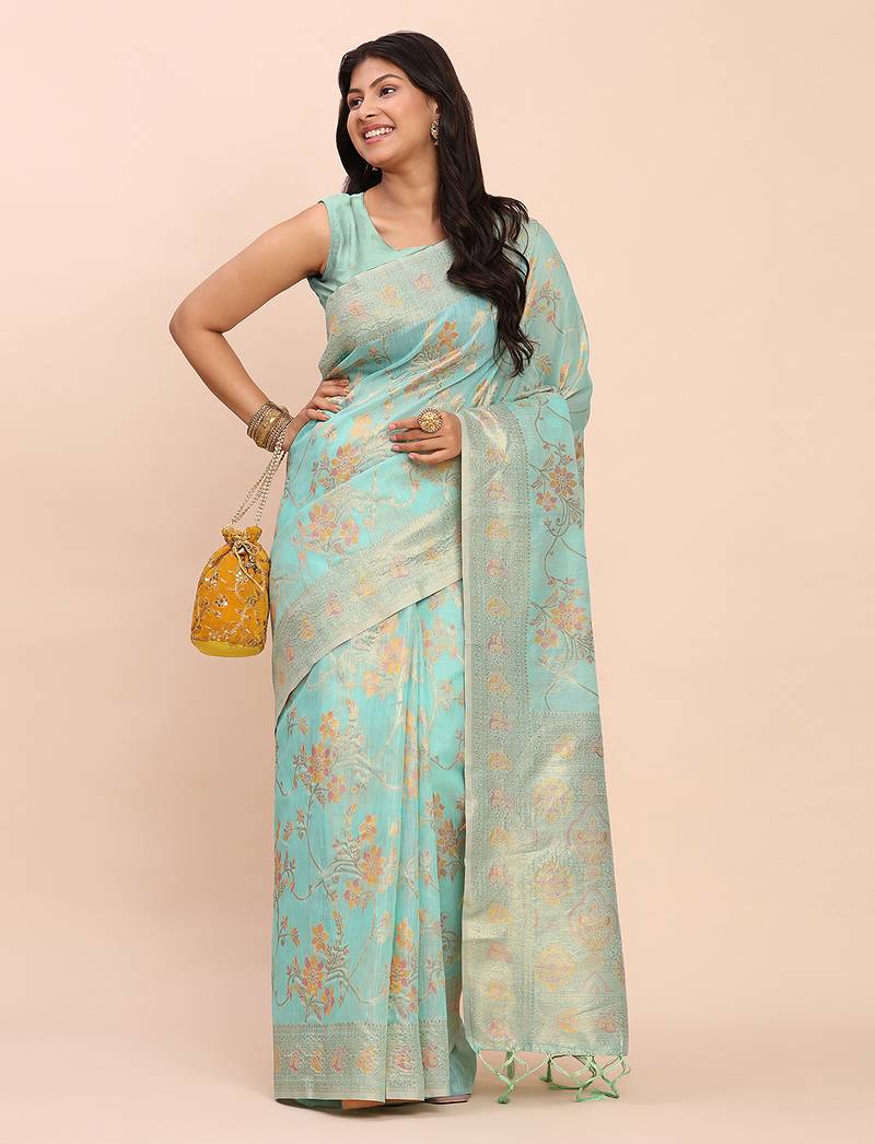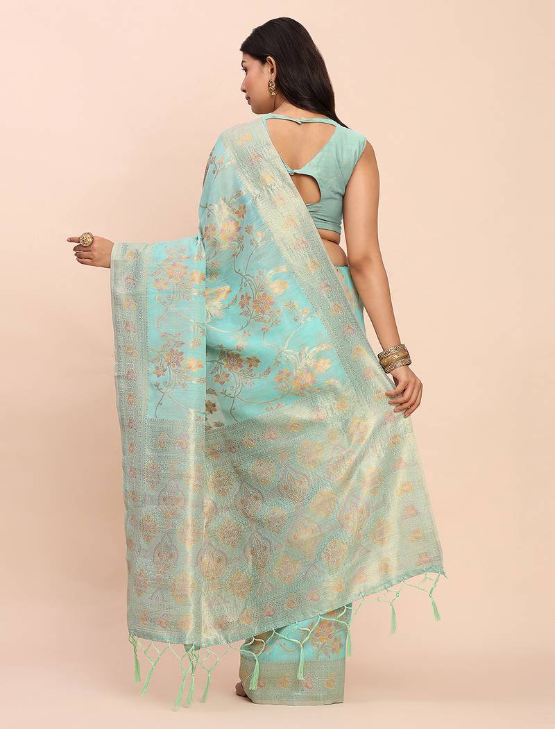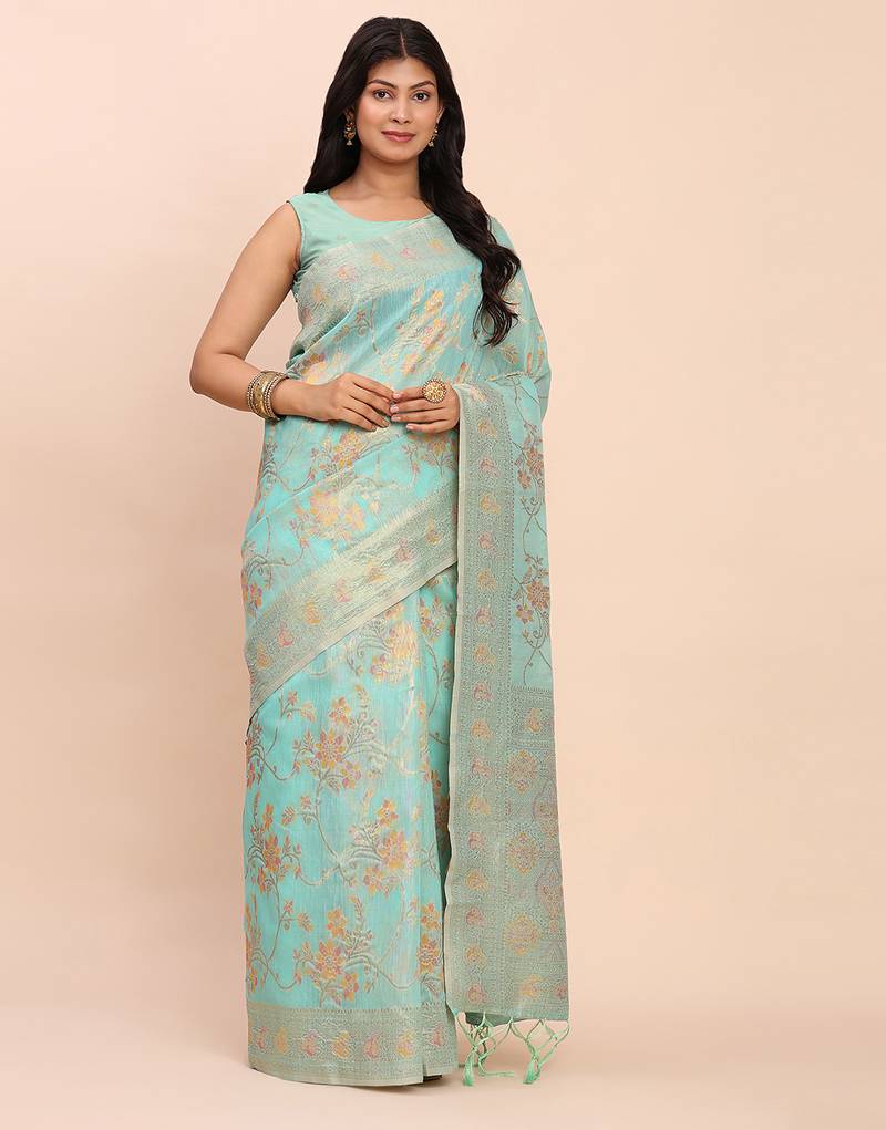 | Product Name | Sea Green Color Woven Work Linen Cotton Saree | |