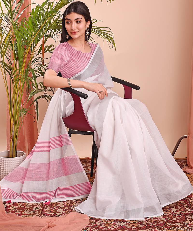| Product Name | White Color Linen Cotton Zari Border Saree | |