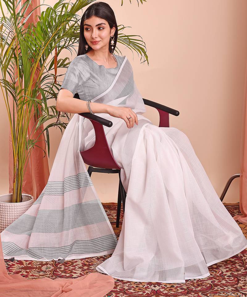 | Product Name | White Color Linen Cotton Zari Border Saree | |