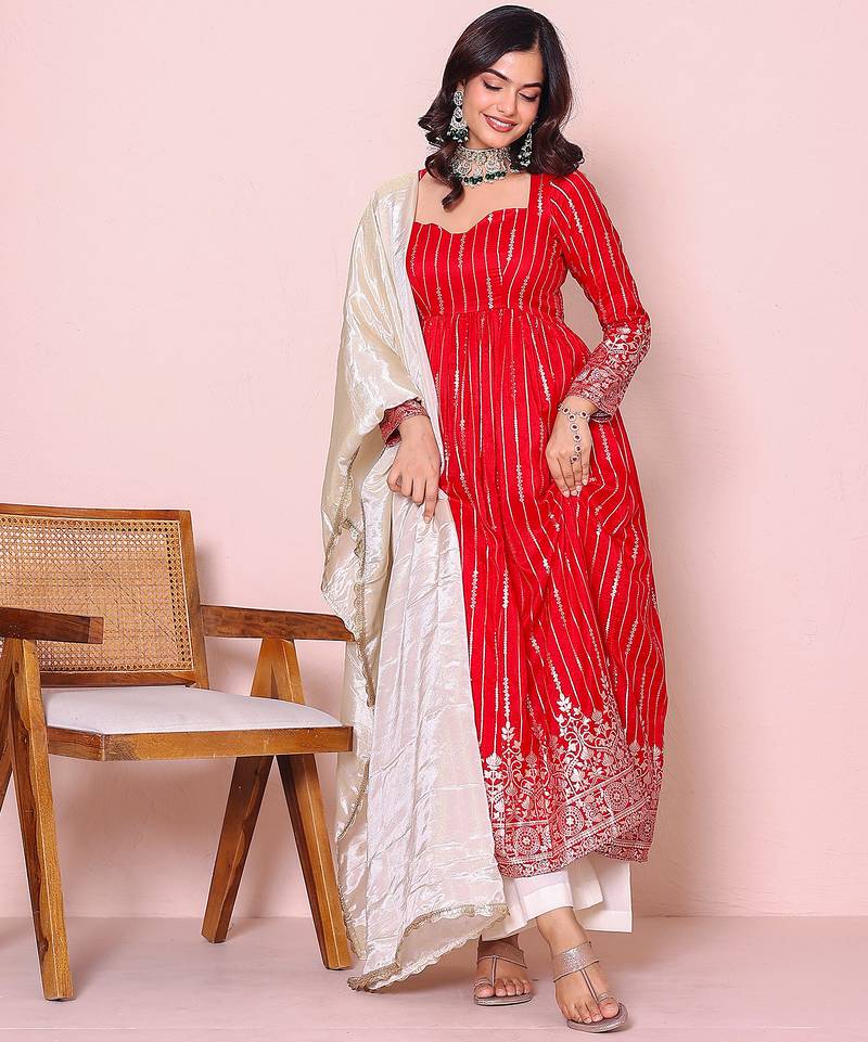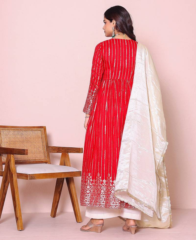 | Product Name | Red Ethnic Motifs Printed Panelled Kurta With Palazzo & Dupatta | |