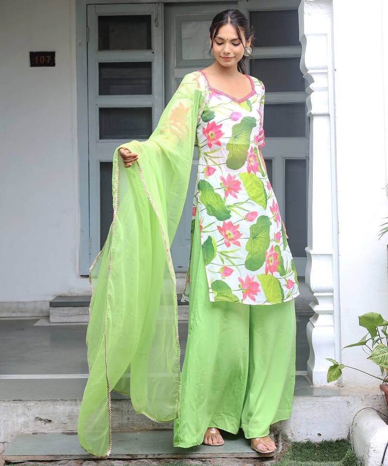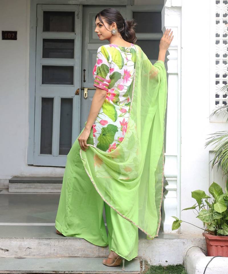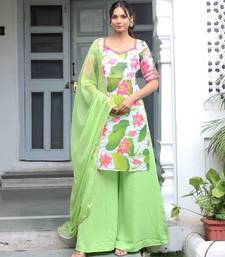 White floral printed kurta with palazzo & dupatta stitched