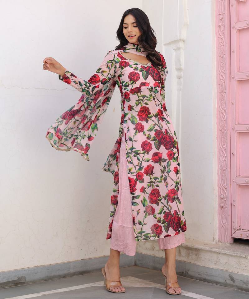 | Product Name | Pink Floral Printed Kurta With Palazzo & Dupatta | |