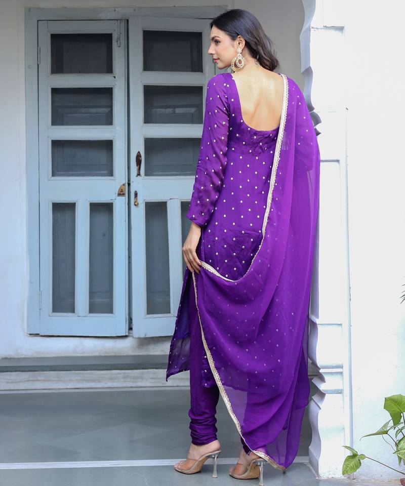 | Product Name | Purple Printed Regular Kurta With Churidar & Dupatta | |