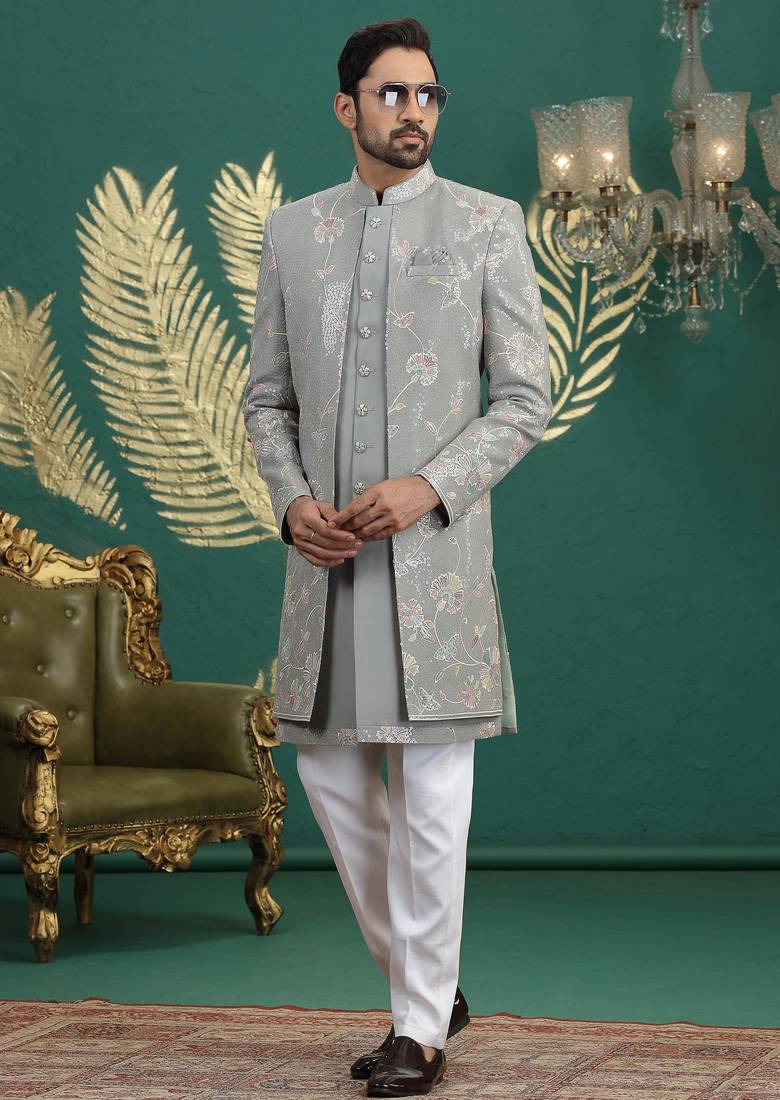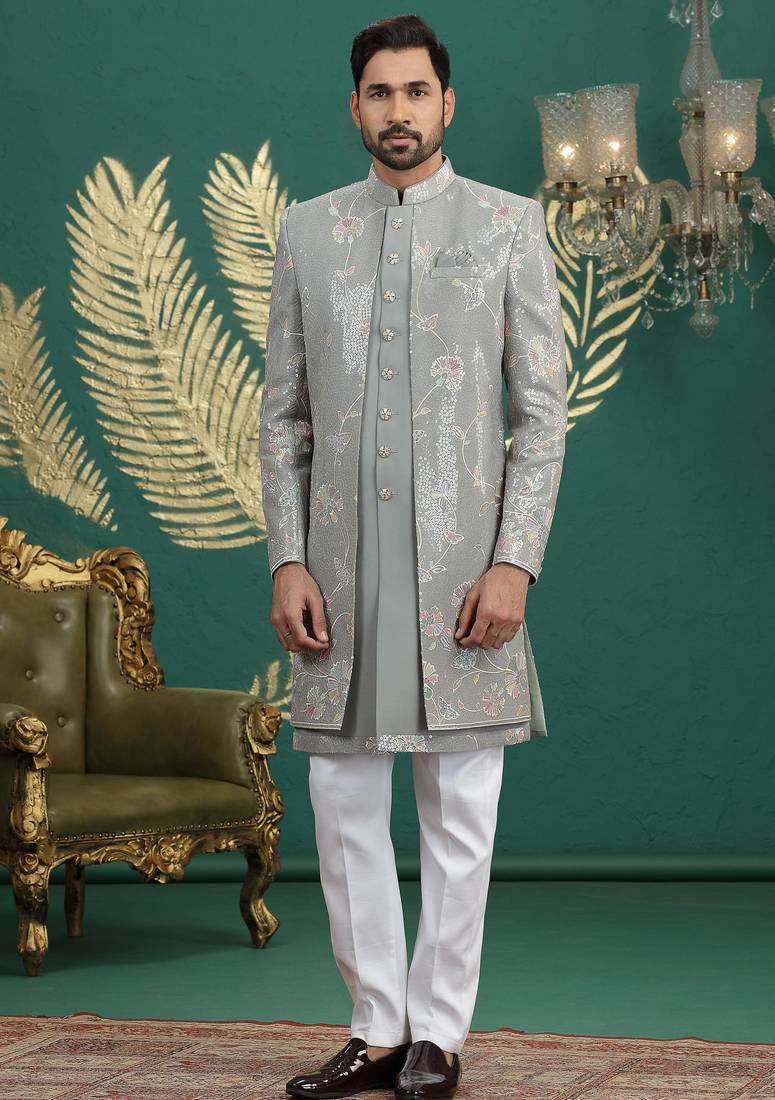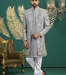 | Product Name | Green Computer Thread Work On Art Silk 3 Peice Indo Western Set For Men | |