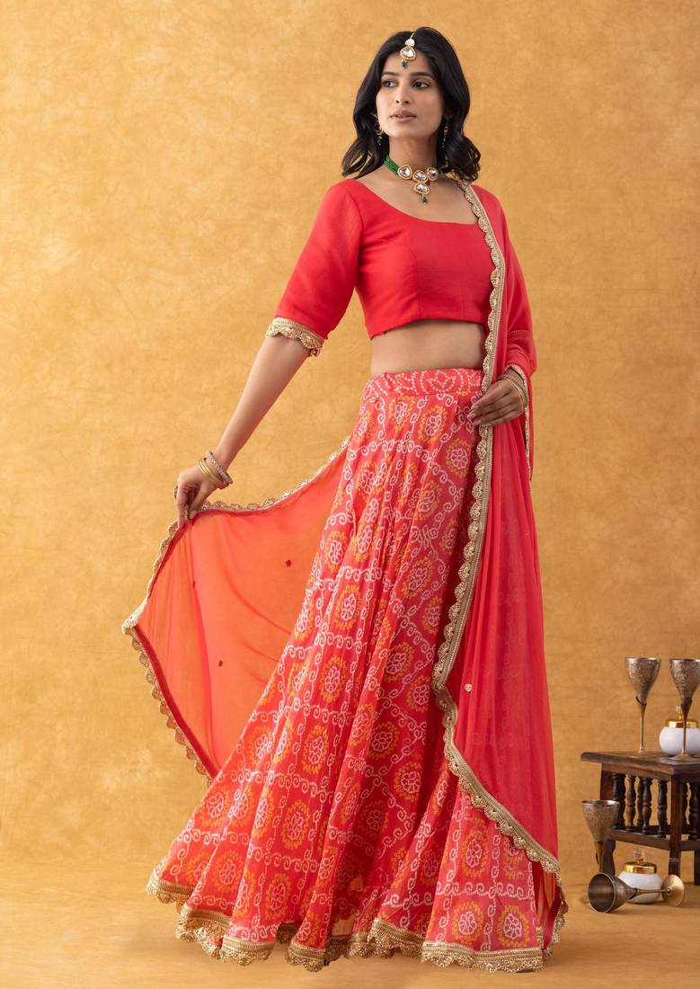 | Product Name | Red Bandhani Print Lehenga Set With Choli And Embellished Dupatta | |