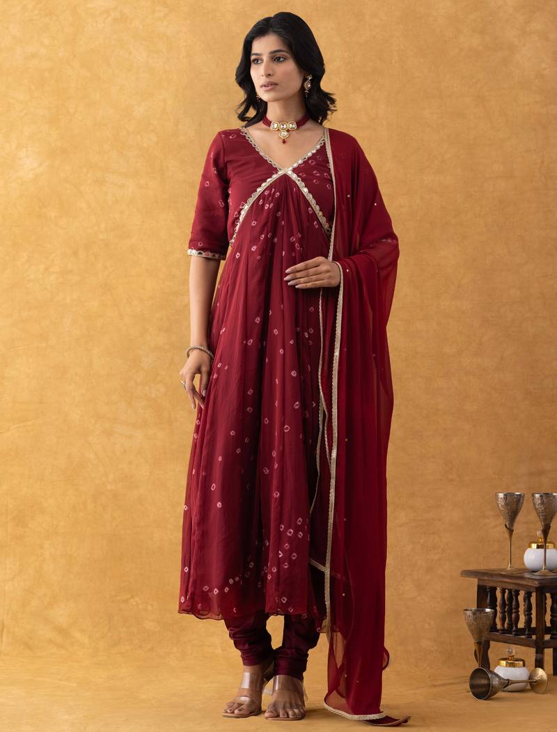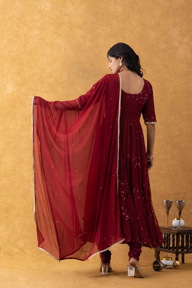 | Product Name | Wine Bandhani Suit Set With Dupatta | |