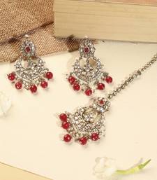 | Product Name | Chandelier Red Pearl Brown Kundan Stone Antique Gold Plated Brass Earring With Maang Tikka For Women | |