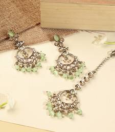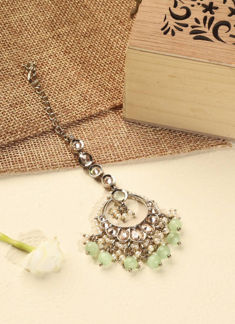 | Product Description | This Saloni Fashion Jewellery Gorgeous Circle And Leaf Shape Light Green Pearl Brown Kundan Stone Antique Gold Plated Chandelier Earring With Maang Tikka For Women And Girls Is Made Of Brass Will Give You Astonishing Charm And Super Comfort.