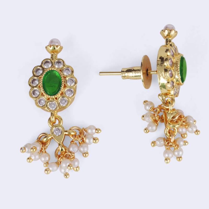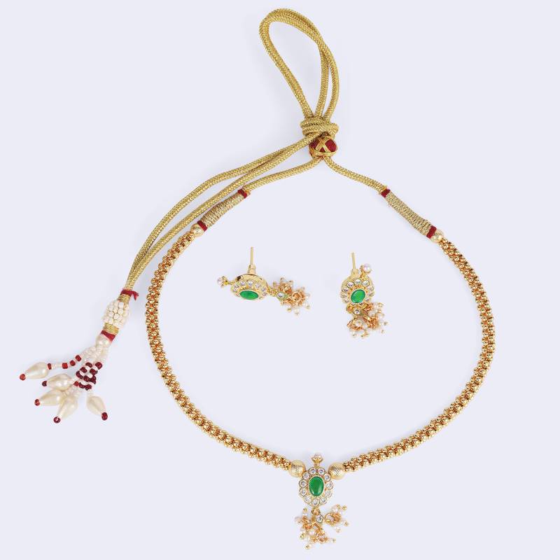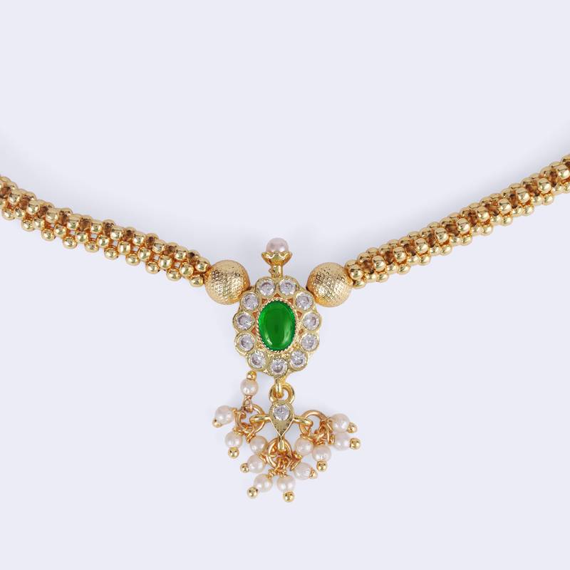 | Product Name | Round Shape And Small Golden Ball Green Kundan Stone Gold Plated Brass Choker Necklace Set For Women | |