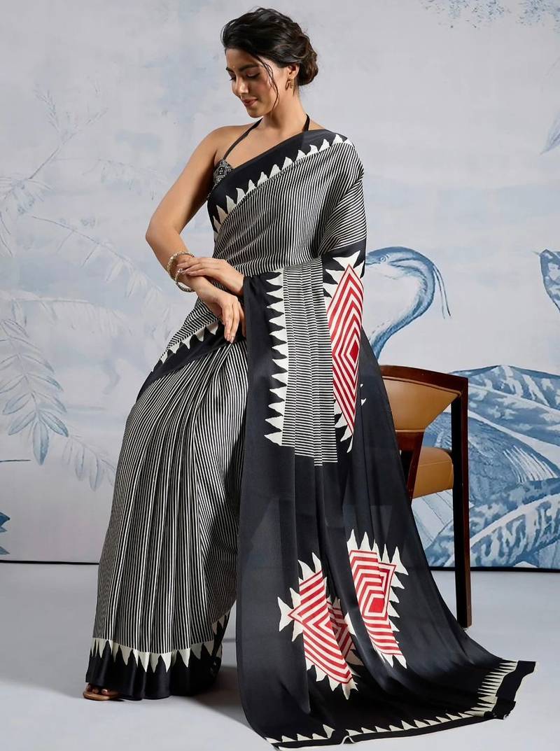 | Product Name | Black Printed Satin Saree With Blouse Piece | |