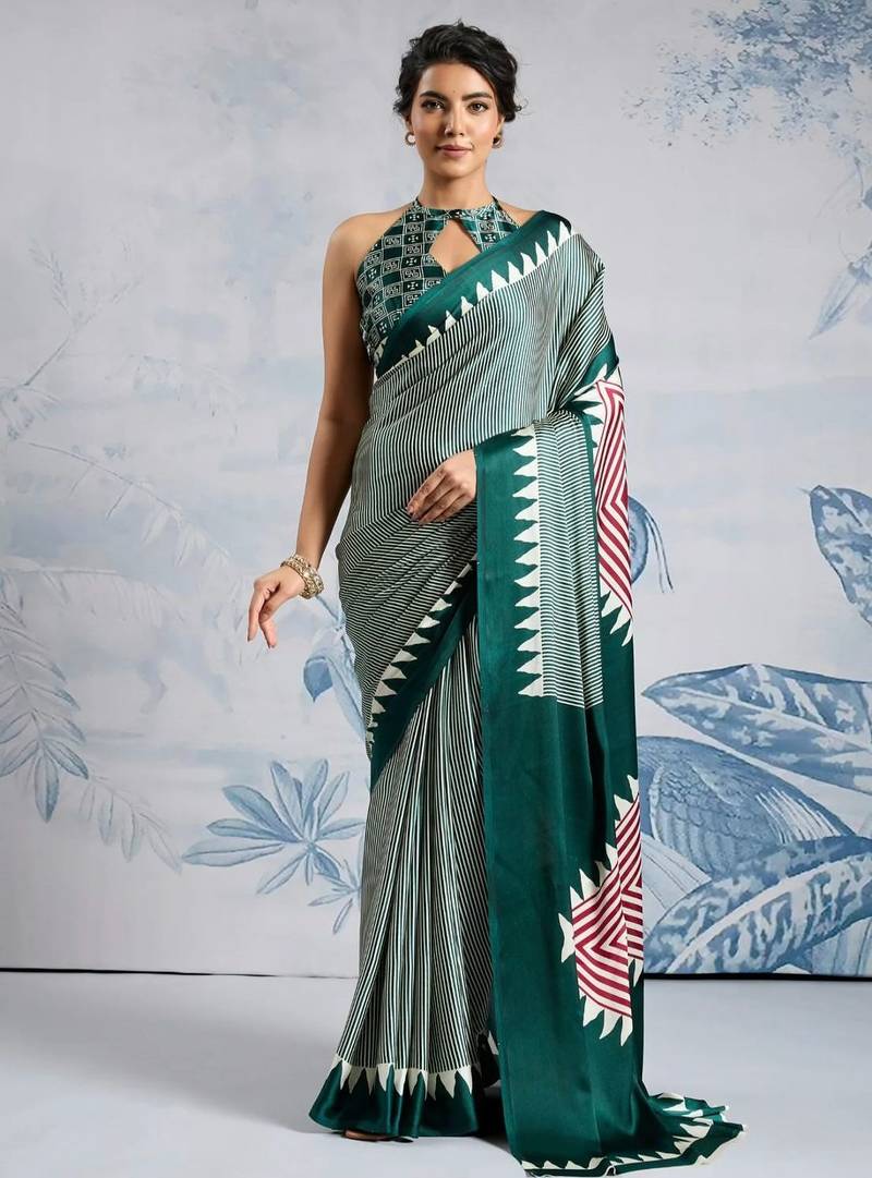 | Product Name | Green Printed Satin Saree With Blouse Piece | |