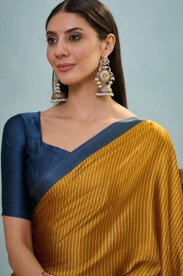 | Product Name | Mustard Printed Satin Saree With Blouse Piece | |