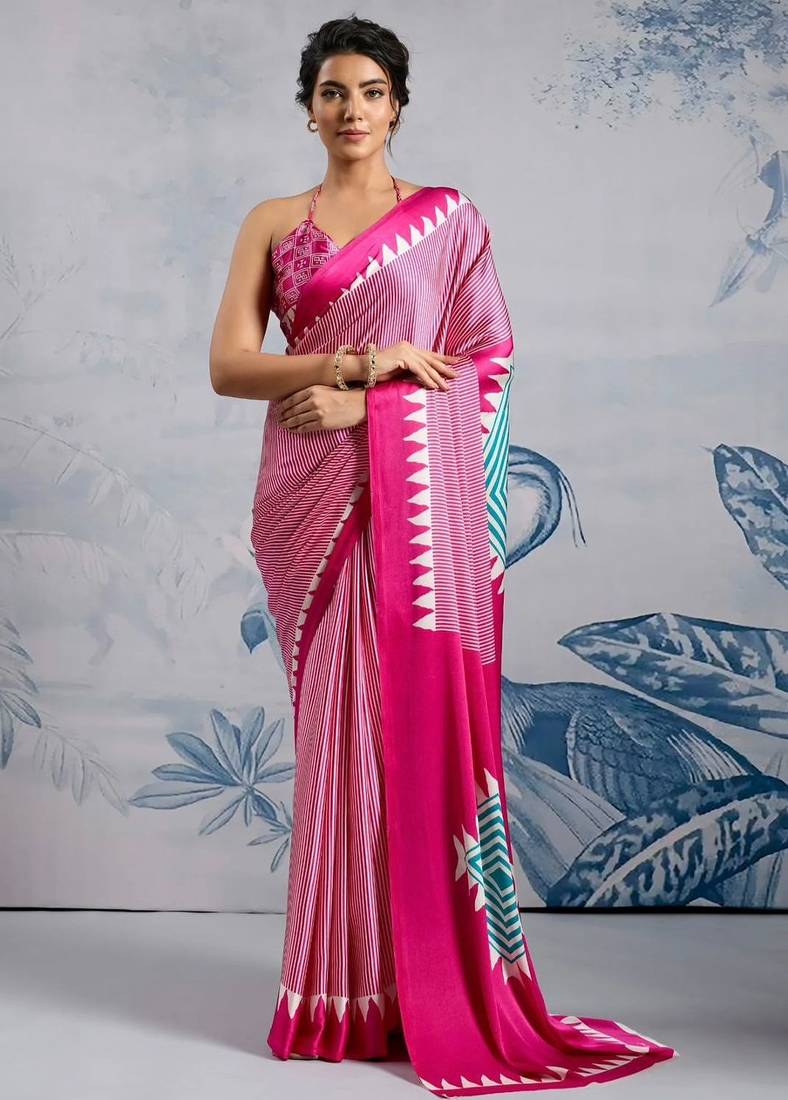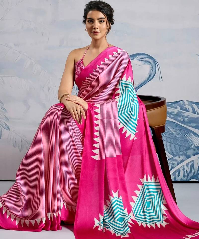 | Product Name | Pink Printed Satin Saree With Blouse Piece | |
