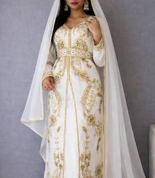 Off white handcrafted zari work stitched georgette kaftan festive dress
