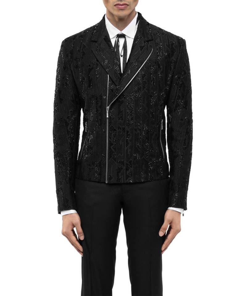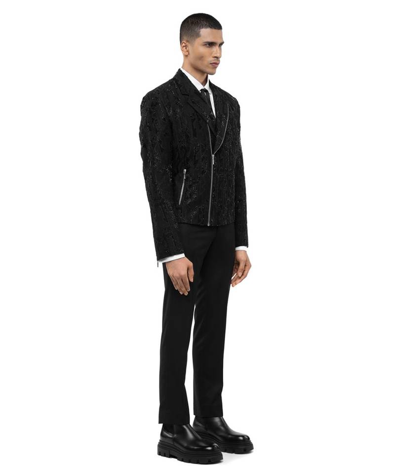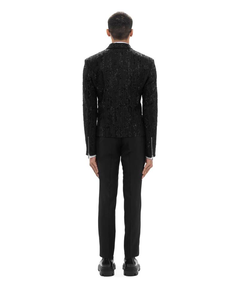 Black embroidered silk blazer