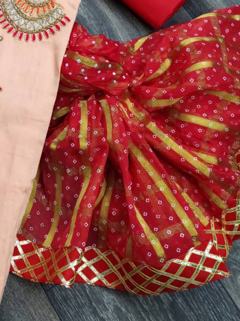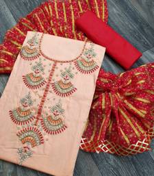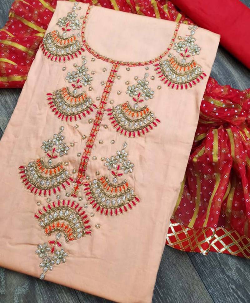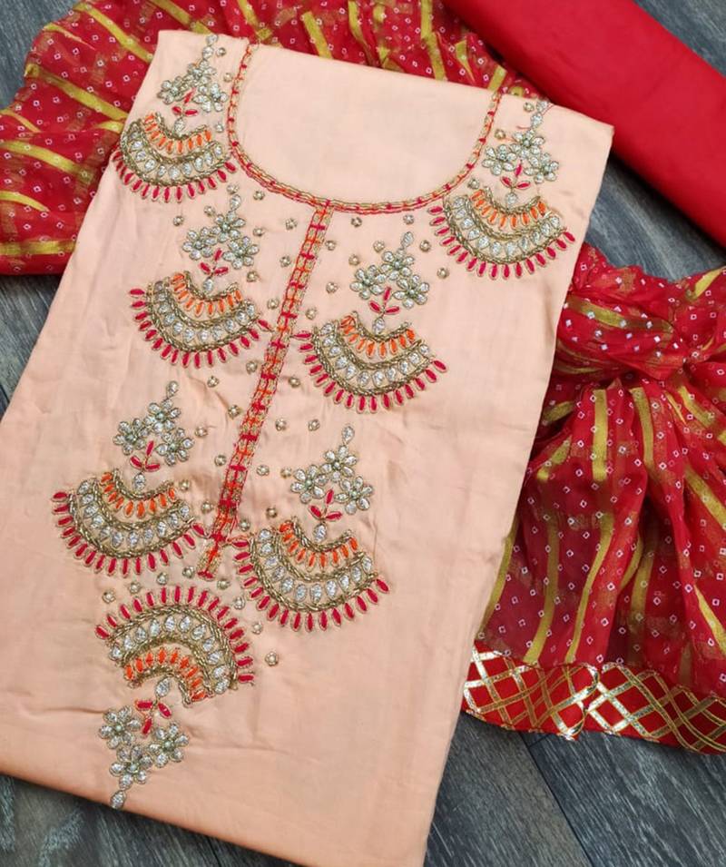 | Product Description | Fancy Fancy Hand Work With Bandhani Print Dupatta Straight Style 2.00 Mtr Unstitched Dress Material Top Of Baby Pink Colour Glass Cotton Fabric Suggestable Quarter Style Sleeves And Round Style Neck Also Including 2.10 Mtr Chudidar Style Bottom Piece Material Of Pink Colour Cotton Fabric With 2.00 Mtr Dupatta Of Pink Colour Banarasi Jacquard Fabric |