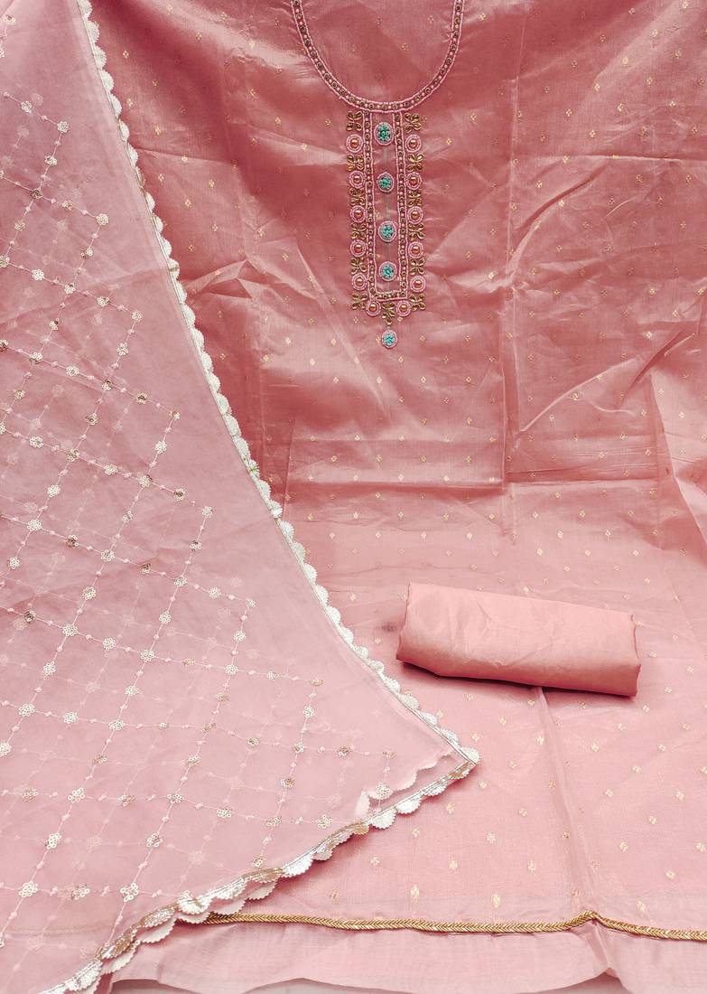 Baby pink organza woven dress material unstitched