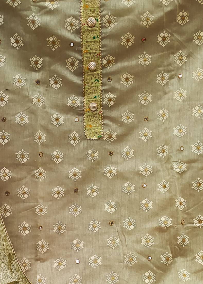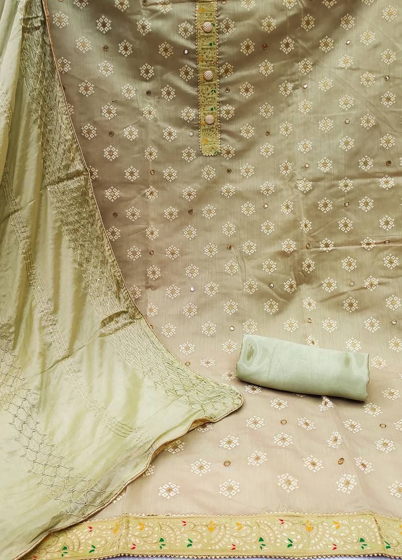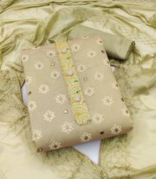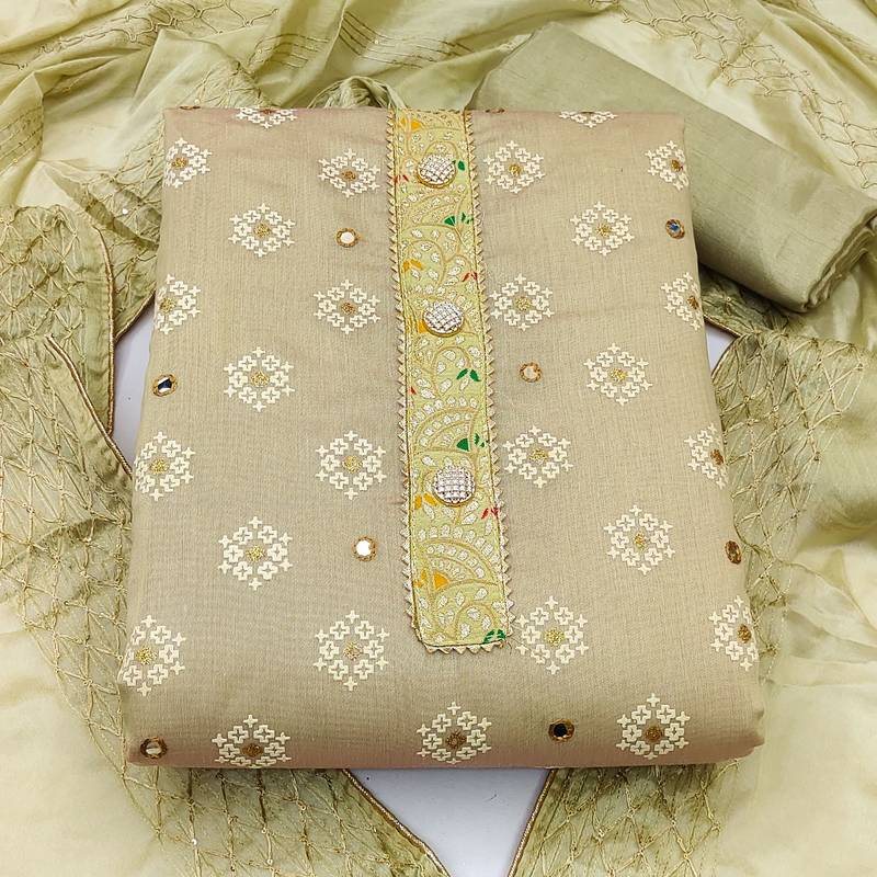 Beige chanderi embroidered dress material unstitched