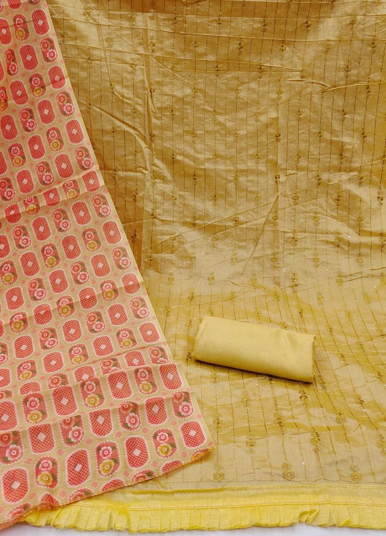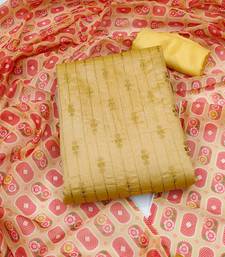Beige chanderi embroidered dress material unstitched