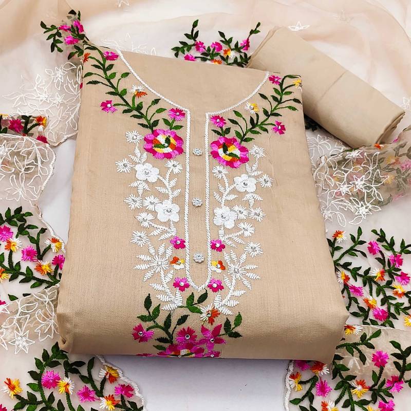 | Product Name | Beige Chanderi Embroidered Dress Material | |